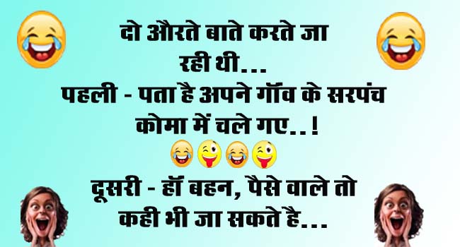Majedar jokes : दो औरते बाते करते जा रही थी.. पहली- पता है अपने गॉंव के सरपंच कोमा में चले गए, दूसरी…
