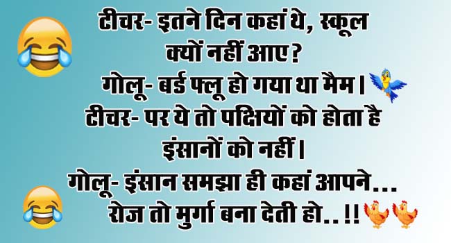 Majedar jokes : टीचर- इतने दिन कहां थे, स्कूल क्यों नहीं आए? गोलू- बर्ड फ्लू हो गया था मैम…