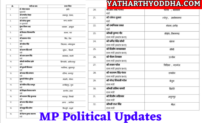 MP Political Updates: मध्यप्रदेश में मंत्रियों के प्रभारों की घोषणा , मुख्यमंत्री मोहन यादव के पास इंदौर, नए राजनीतिक समीकरणों की शुरुआत